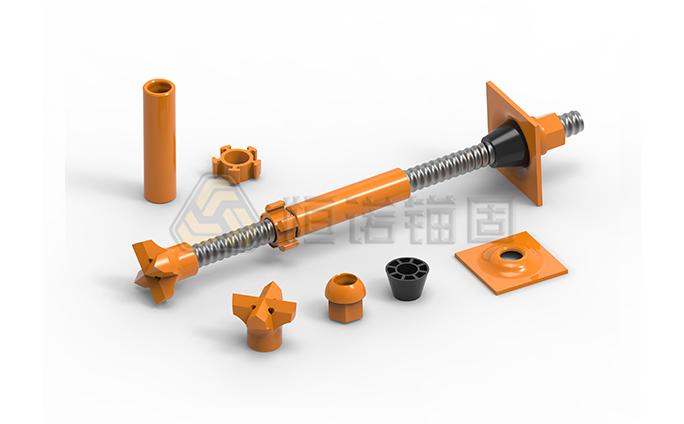 自鉆式錨桿主要由中空錨桿體、螺母、墊板、連接套、居中器和鉆頭組成,集鉆進(jìn)、注漿、錨固功能為一體,適用于破碎、難成孔圍巖。