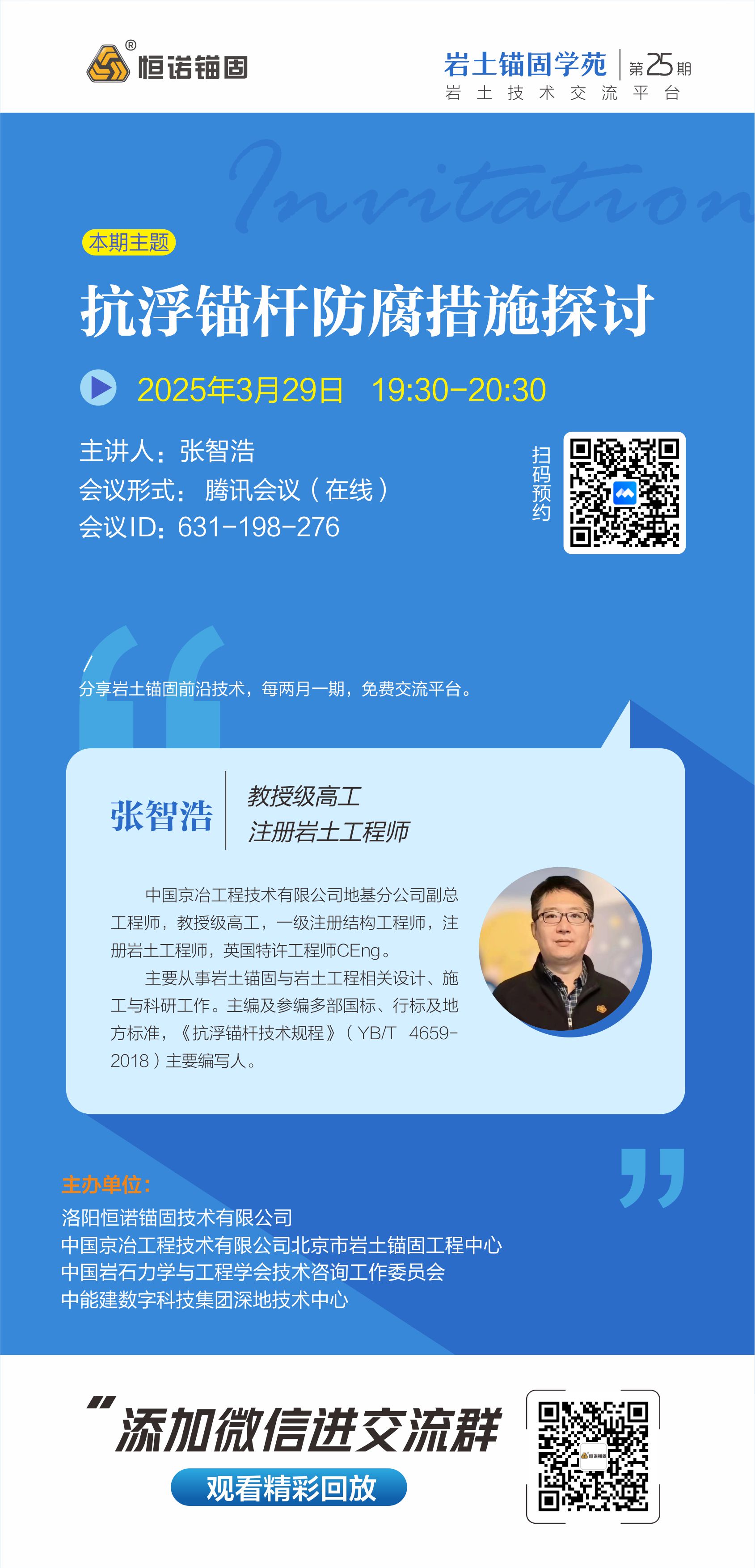 巖土錨固學苑將于2025年11月22日(周六)19:30-20:30舉辦第29期,活動以線上會議形式舉行。...