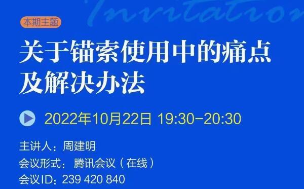 巖土錨固學苑將于2022年10月22日(周六)19:30-20:30舉辦第6期,本期主題:關(guān)于錨索使用中的痛點及解決辦法,歡迎廣大巖土錨固領域愛好者參與交流。...