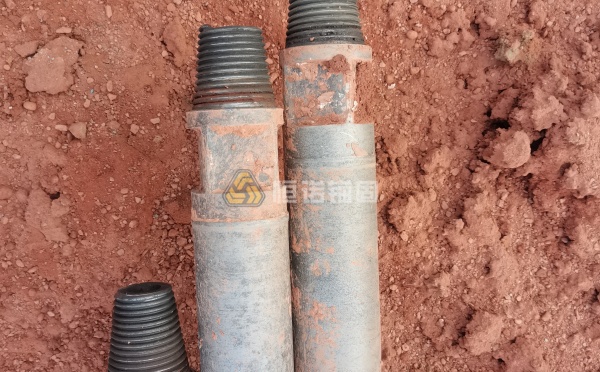 鉆桿的施工過(guò)程是和鉆頭一起作用,通過(guò)鉆機(jī)設(shè)備的鉆進(jìn)和連接頭的連接接長(zhǎng)實(shí)現(xiàn)更深的鉆進(jìn)作業(yè),鉆進(jìn)完成后,逐根把鉆桿取出以便下次重復(fù)使用。